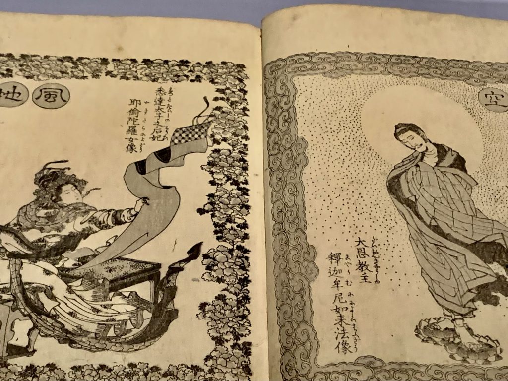 江戸、京都、大阪で刊行された仏伝の読本で、熱心な日蓮宗徒であった北斎が、独自に作り上げた挿絵の図であるとのことでした。