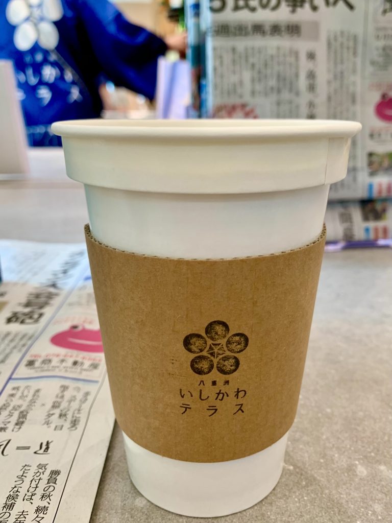 物産を幾つか土産にし、和倉温泉や能登半島のことを祈りました。ショップでは、棒ほうじ茶をいただきました。