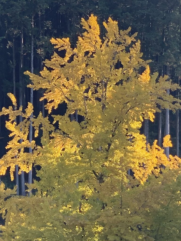 名栗湖の周りを散歩してから、来る途中で見かけたイチョウの木がとてもきれいだったので、近くまで行ってみることにしました。