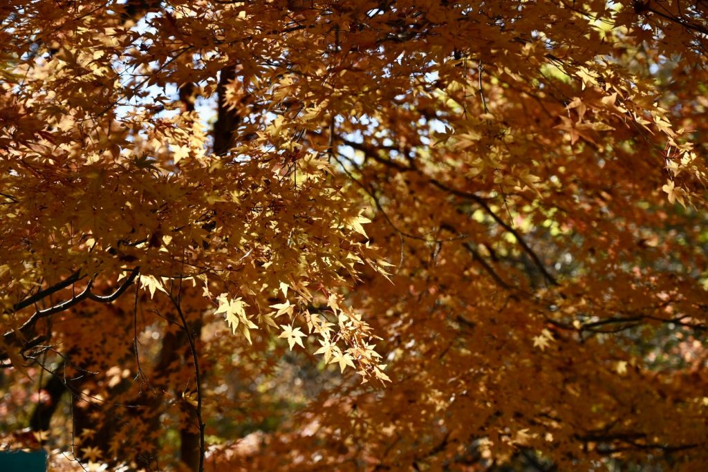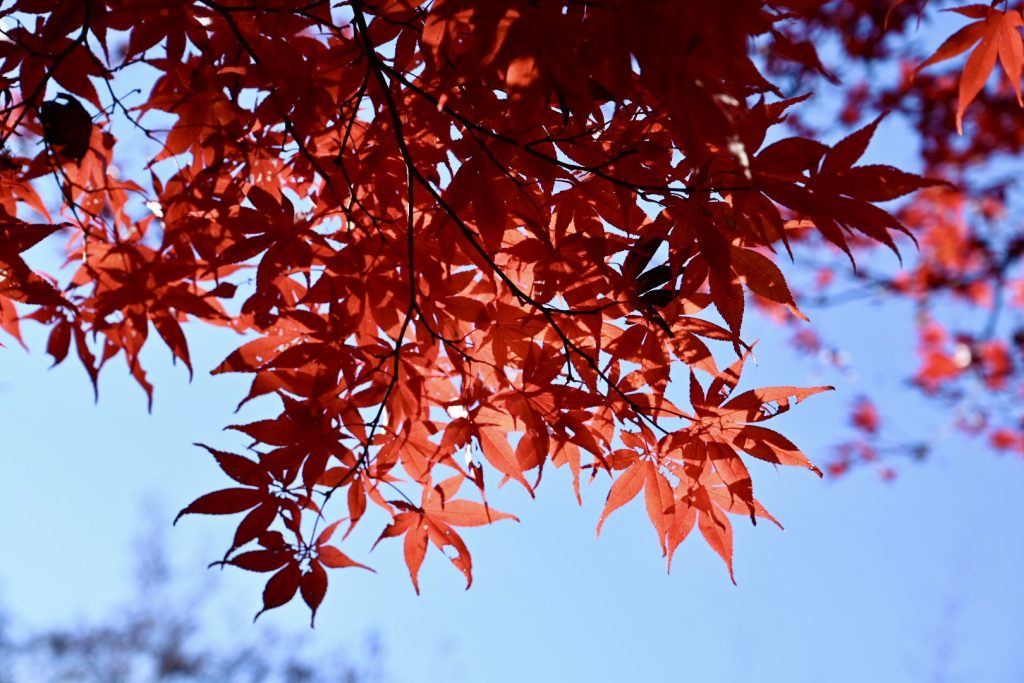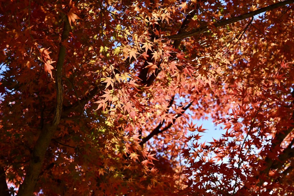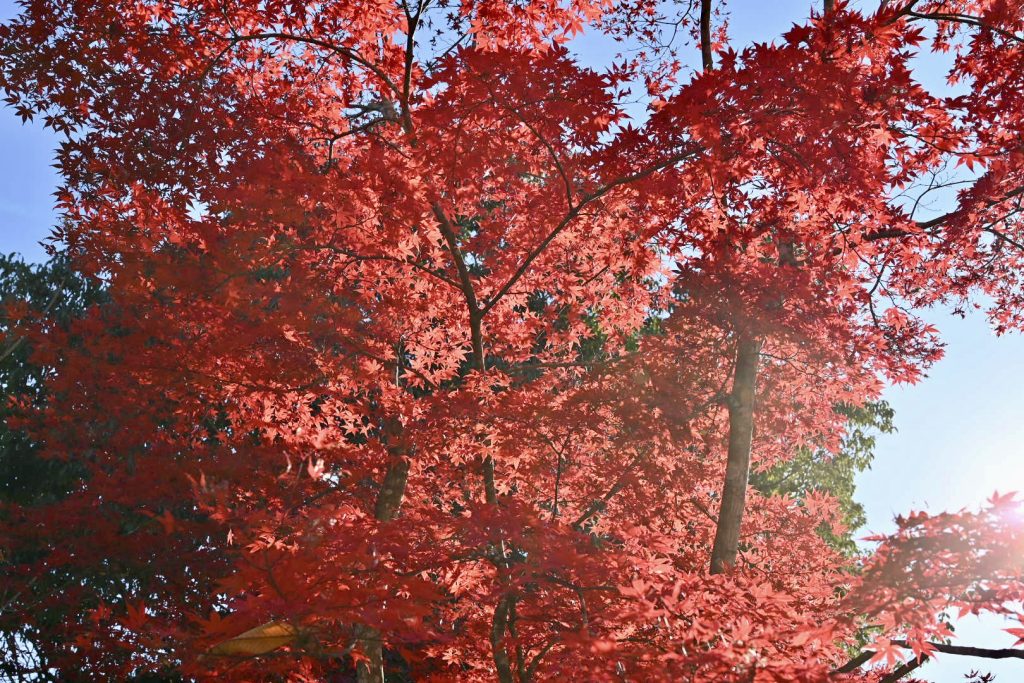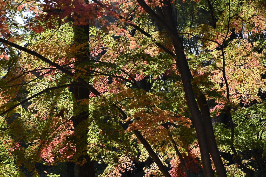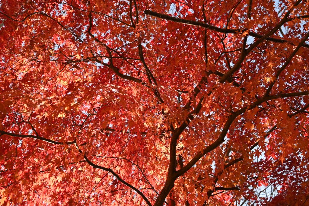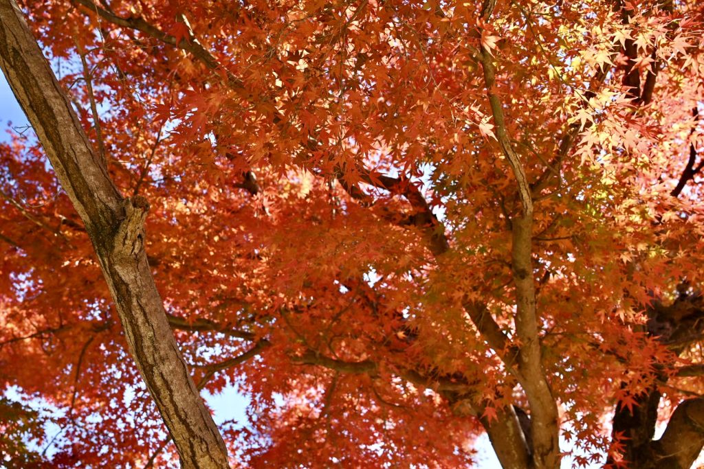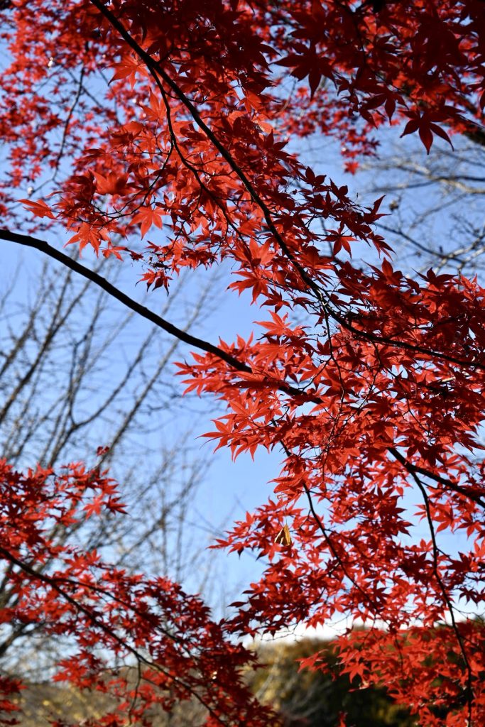青い葉が残る紅葉は、三段階のグラデーションで魅せていました。