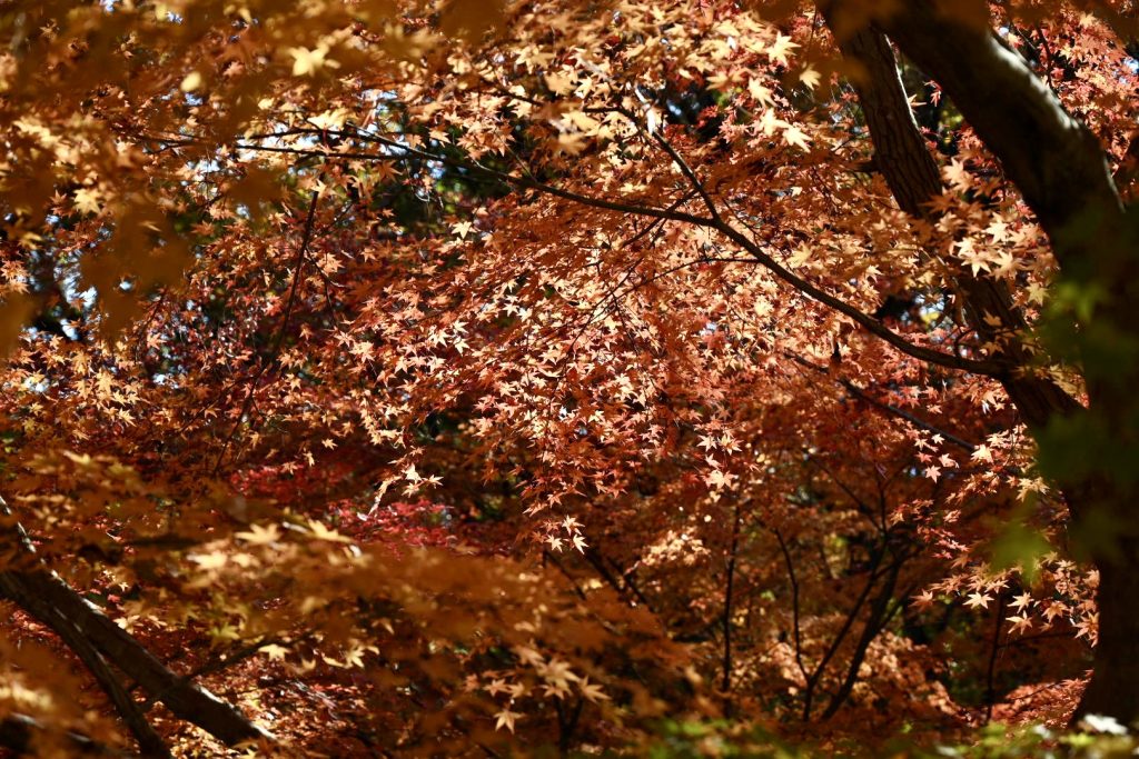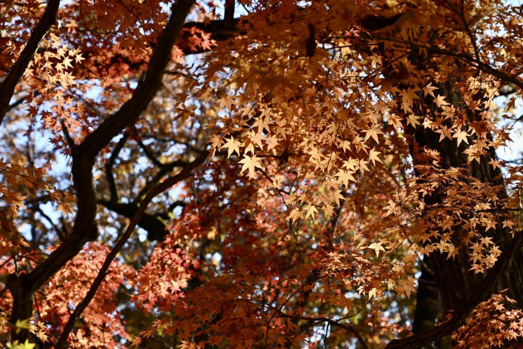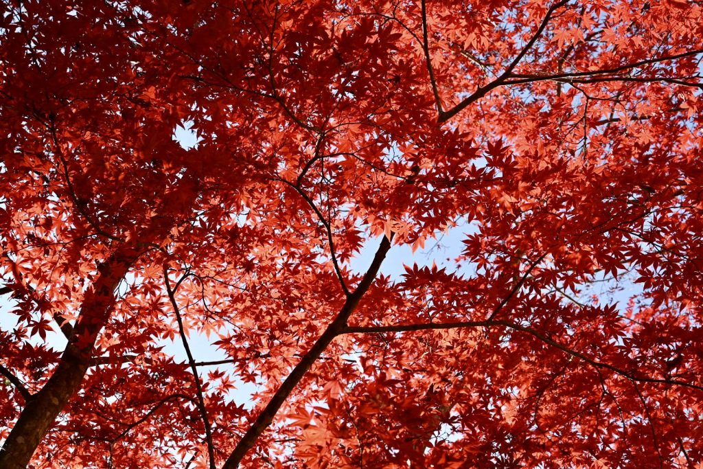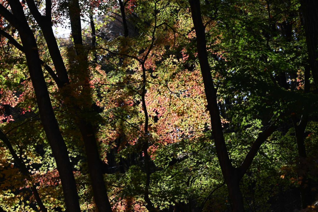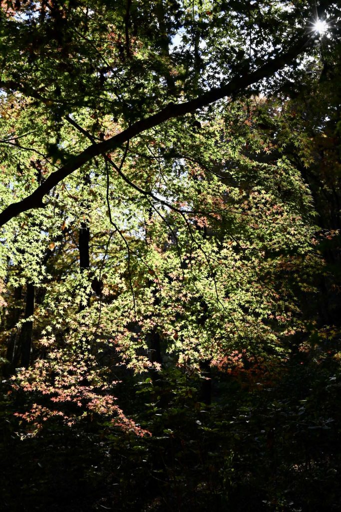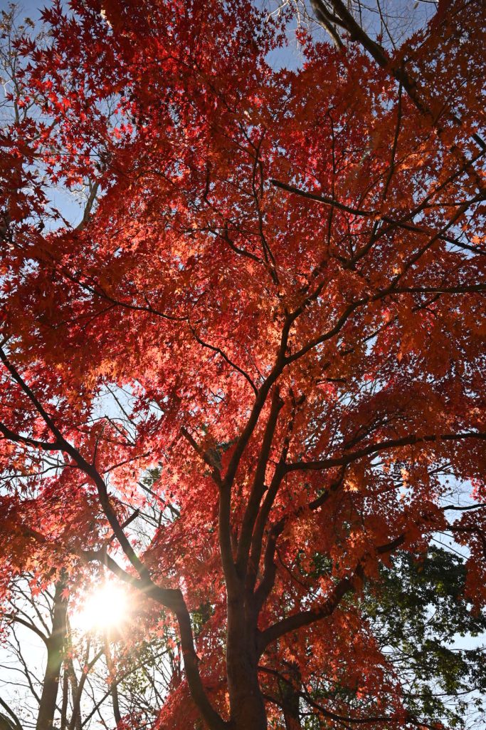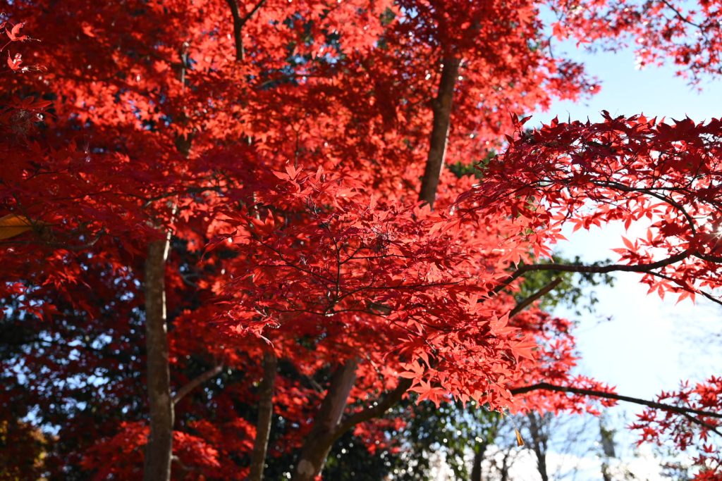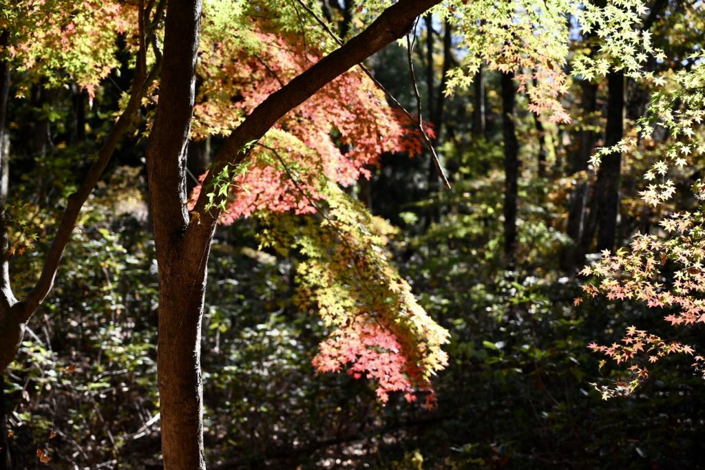青い葉が残る紅葉は、三段階のグラデーションで魅せていました。