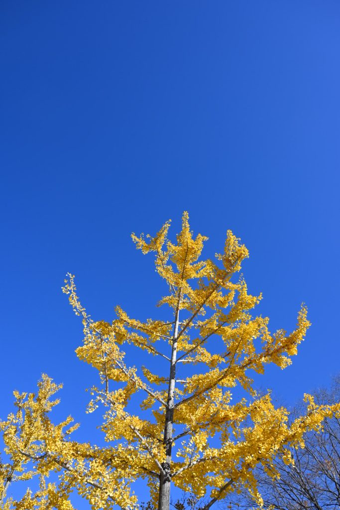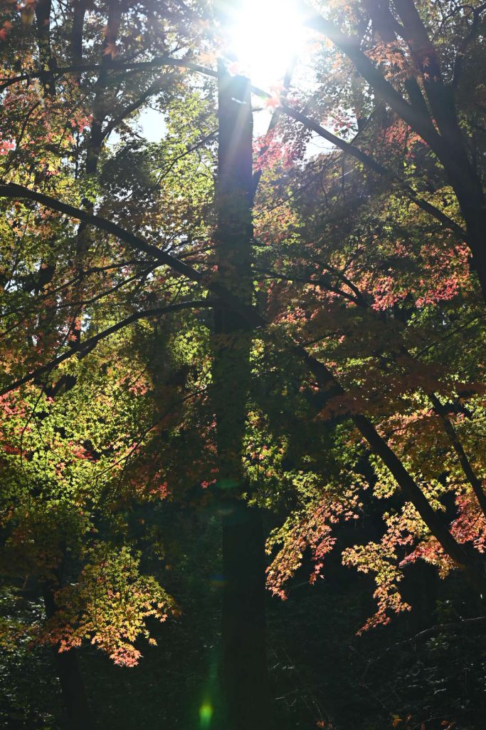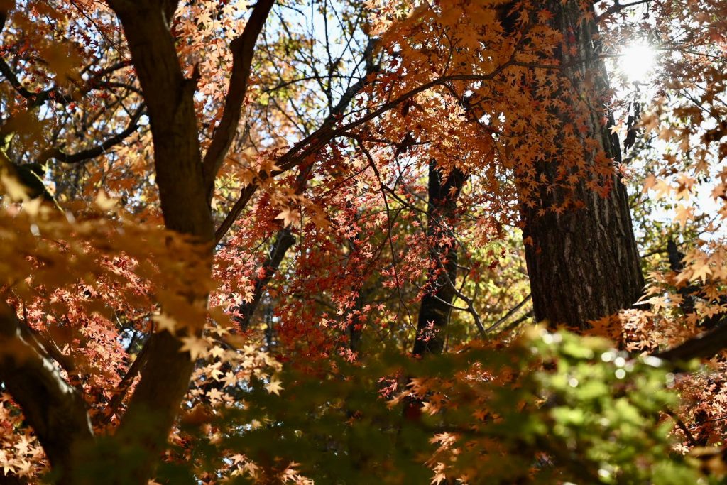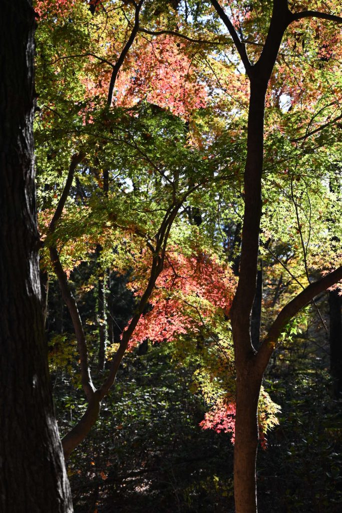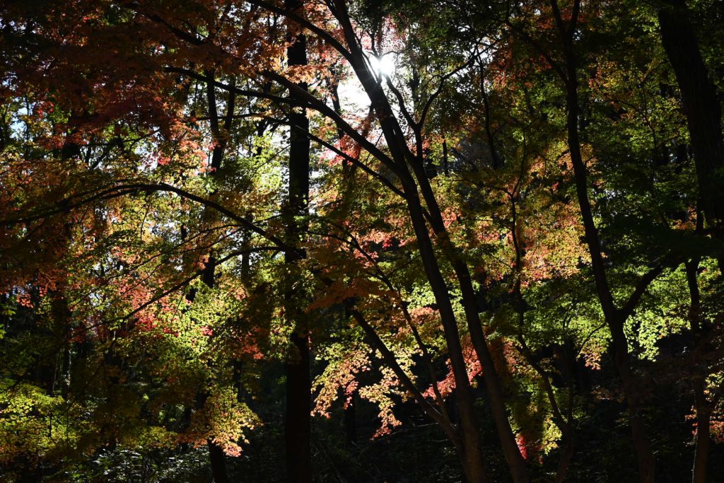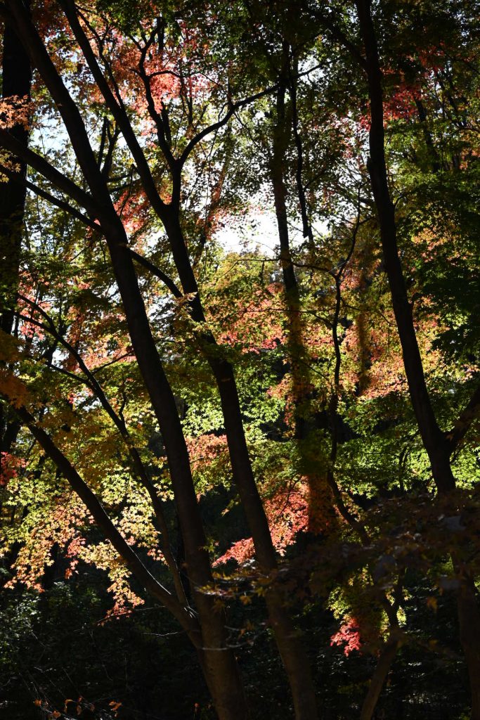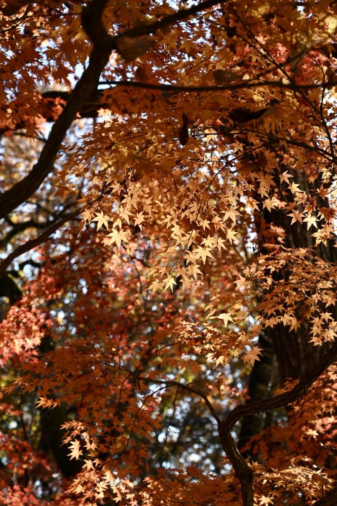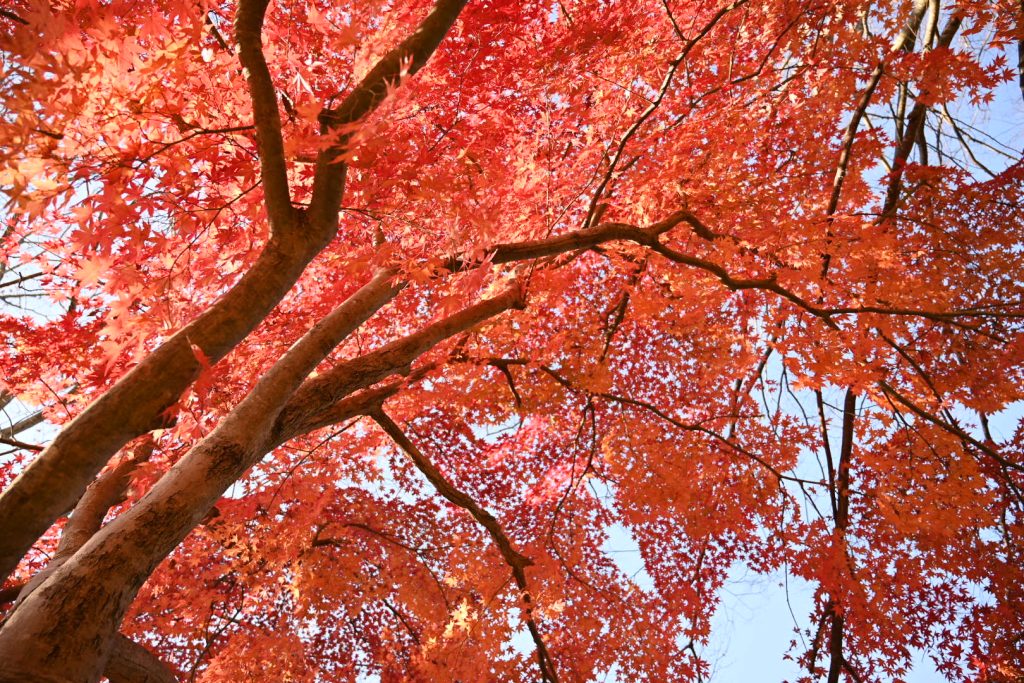 青い葉が残る紅葉は、三段階のグラデーションで魅せていました。