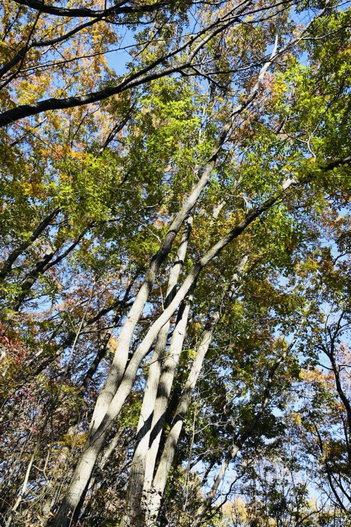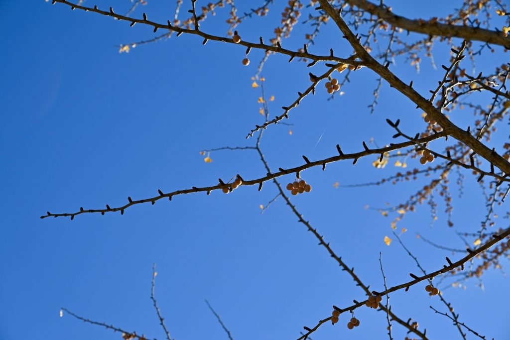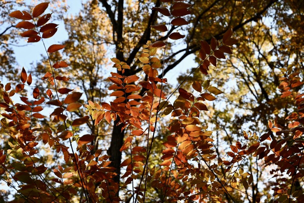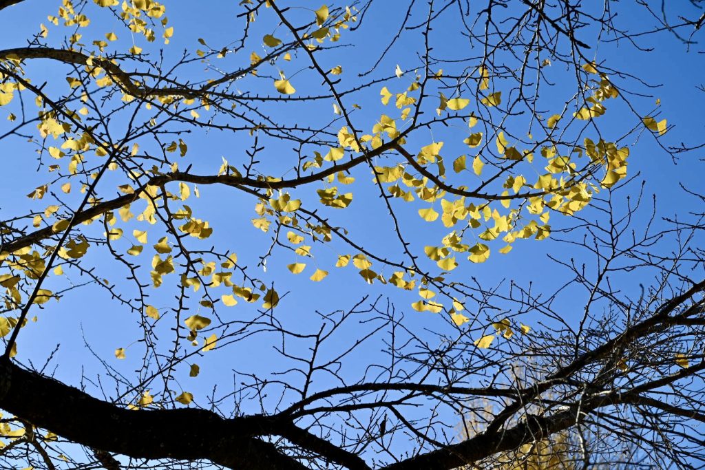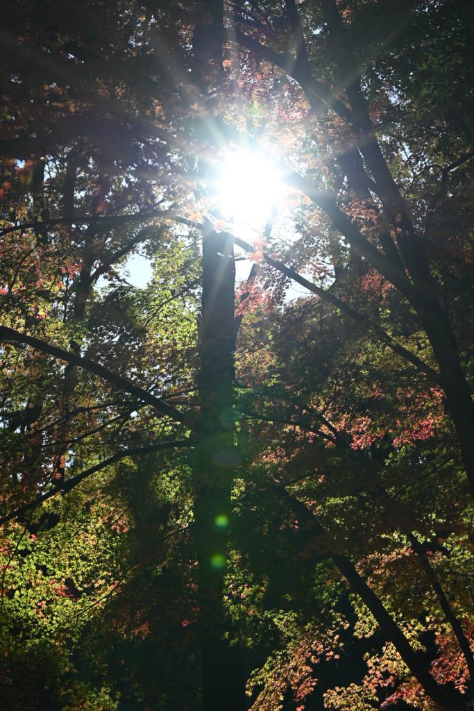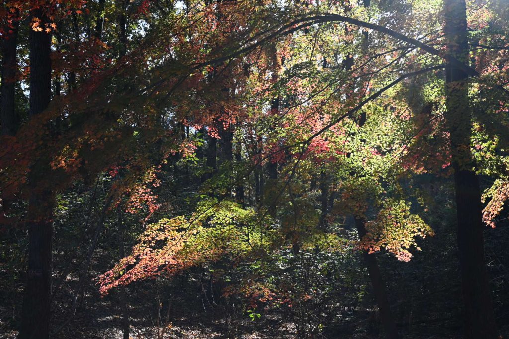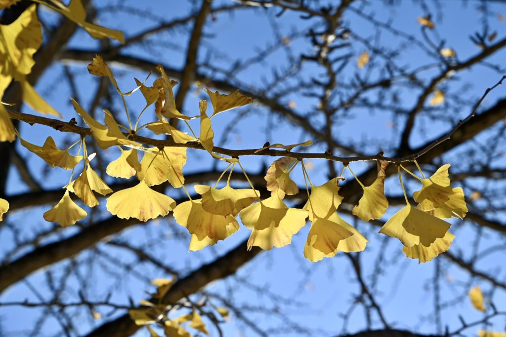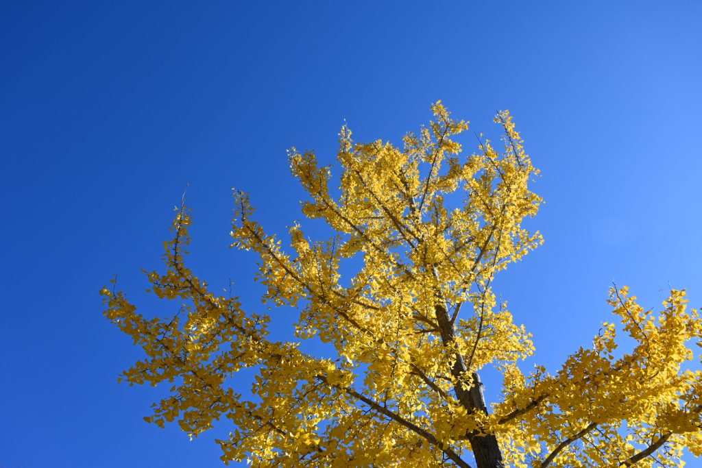 青い葉が残る紅葉は、三段階のグラデーションで魅せていました。