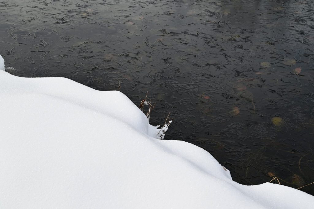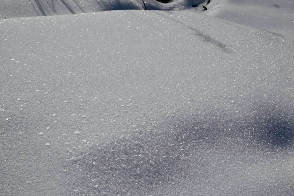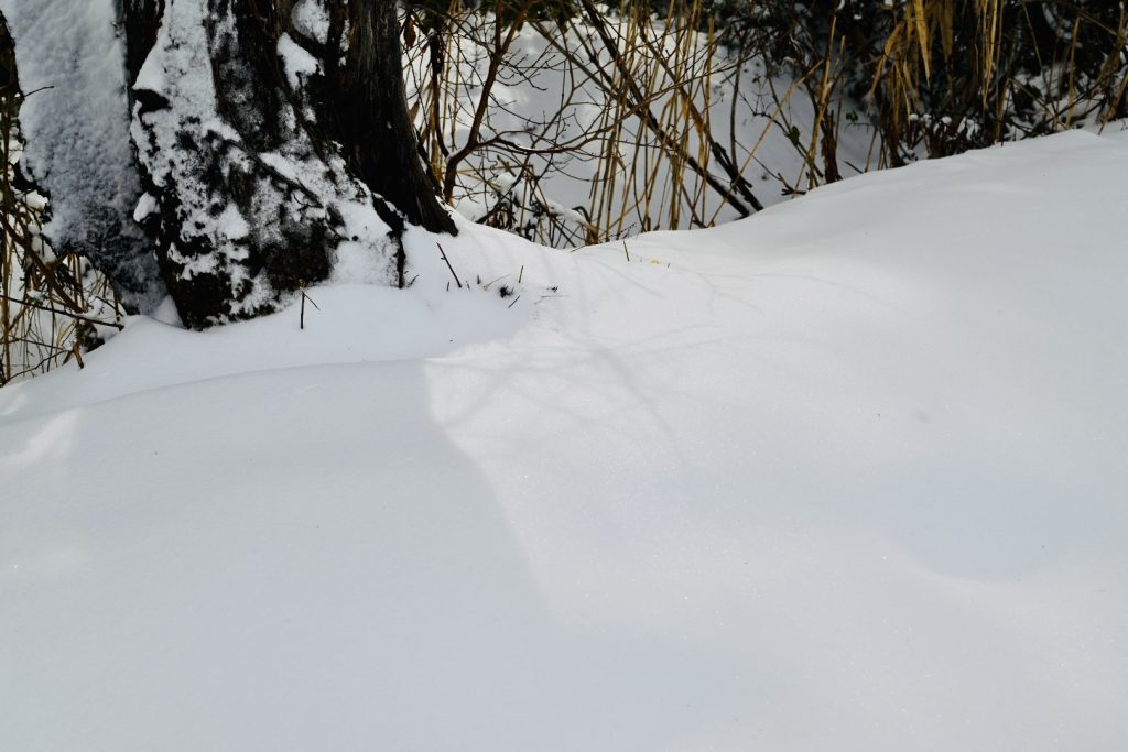 前日の関東圏は強風が吹き荒れていたので、このあたりは雪だったようです。積もったばかりの新雪でした。