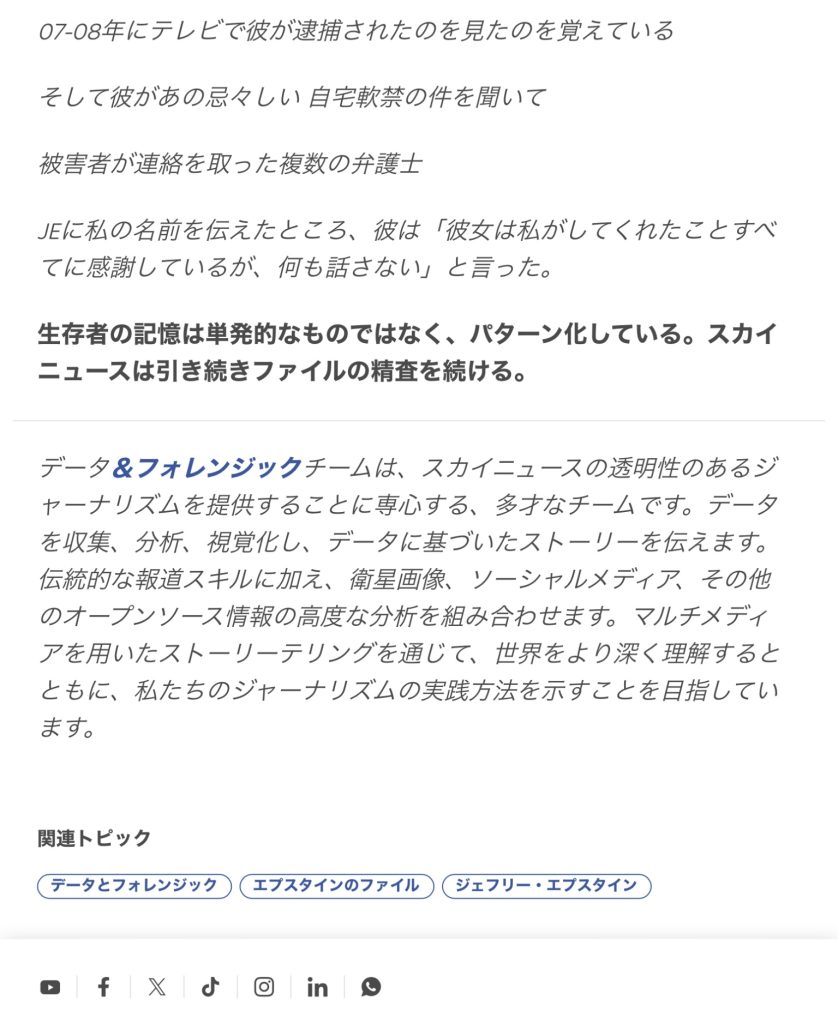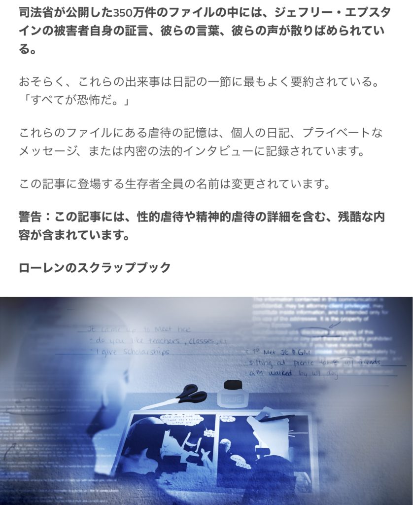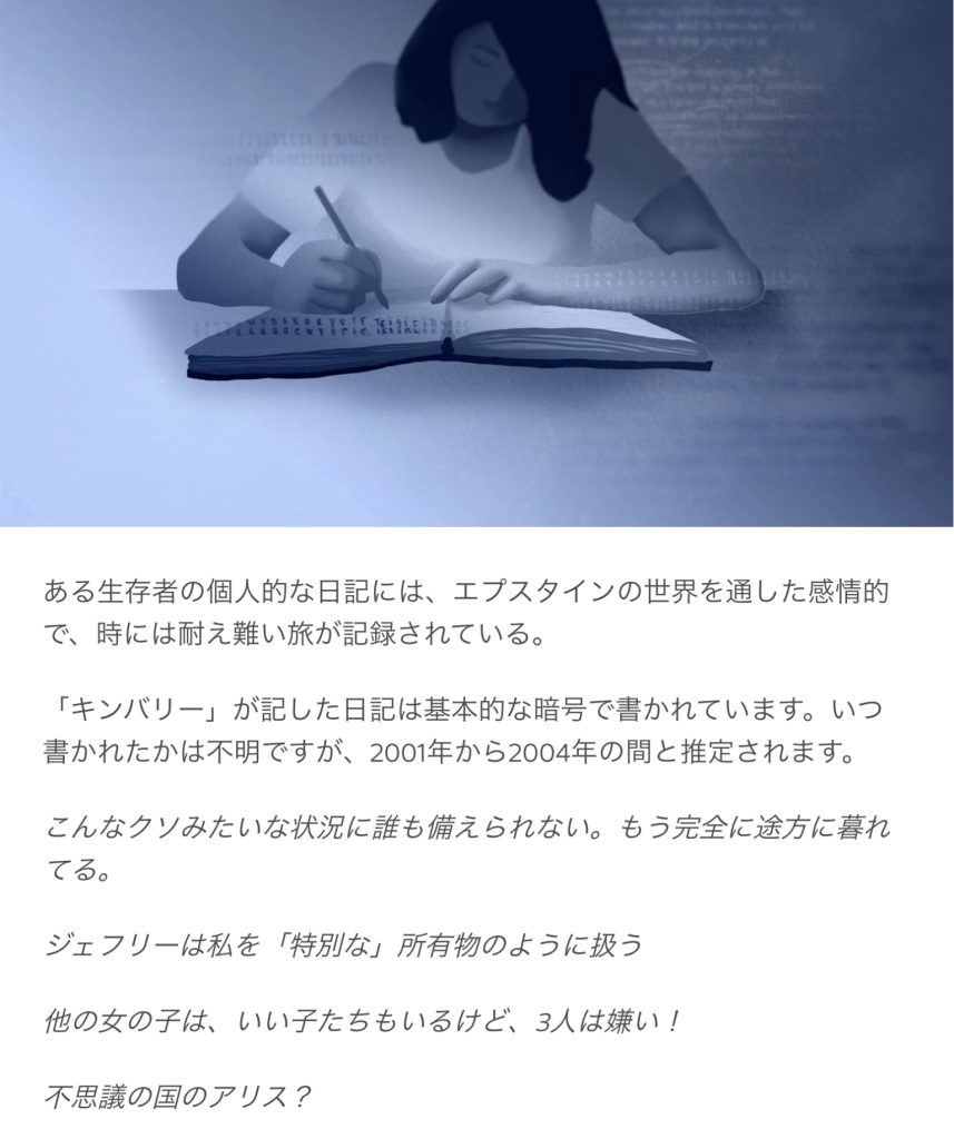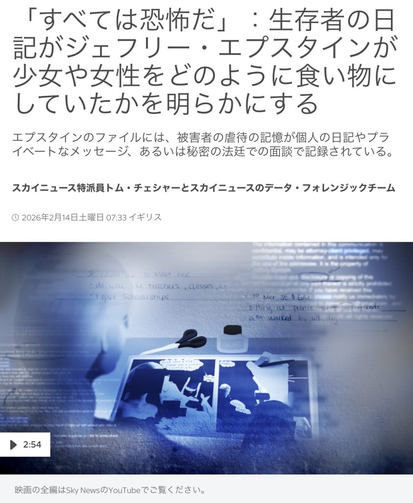 今回は、イギリスのスカイニュースのエプスタイン報道、被害者の日記にフォーカスしてみます。気になる方は、直接、翻訳アプリなどでお読みください。