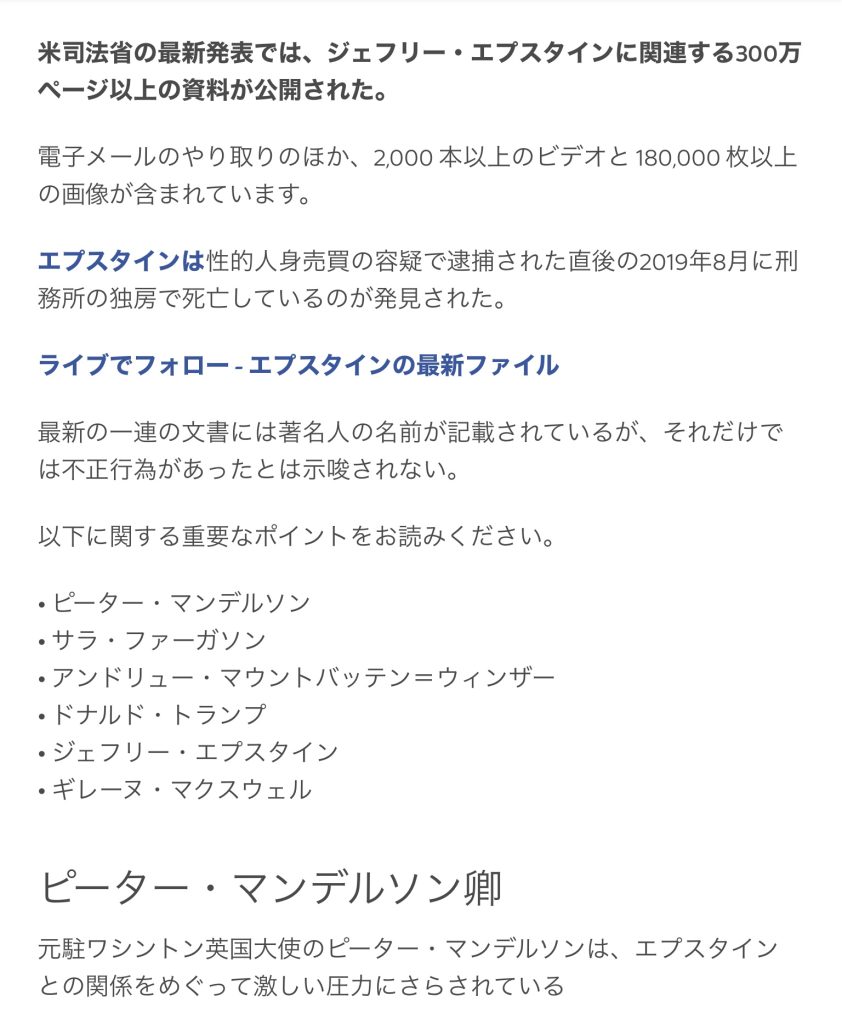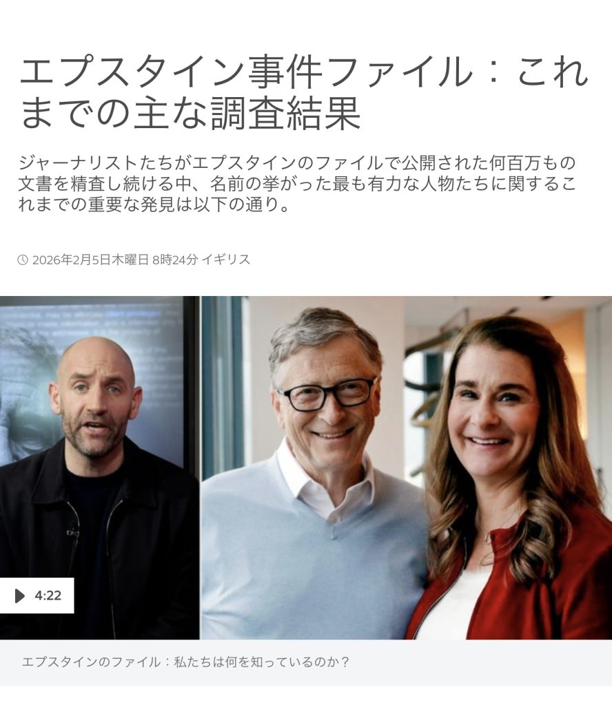 日本で暴かれている、エプスタインのニュースになります。Xでは、連日のように騒がれています。