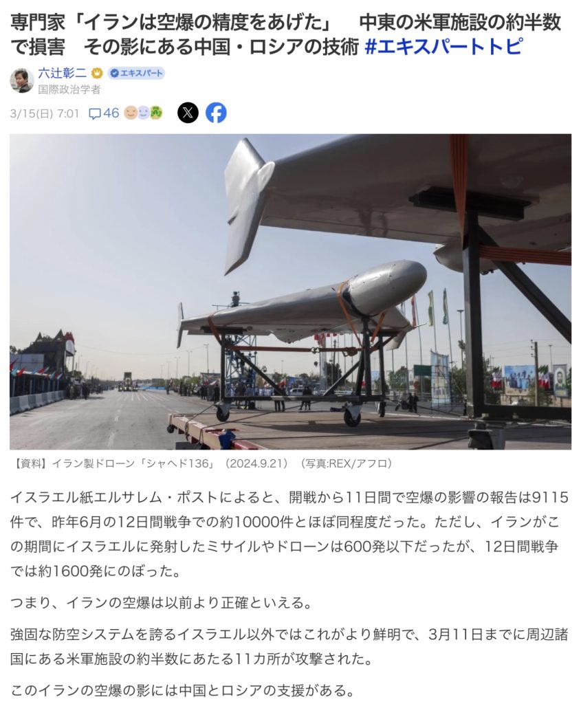 専門家「イランは空爆の精度をあげた」 中東の米軍施設の約半数で損害 その影にある中国・ロシアの技術